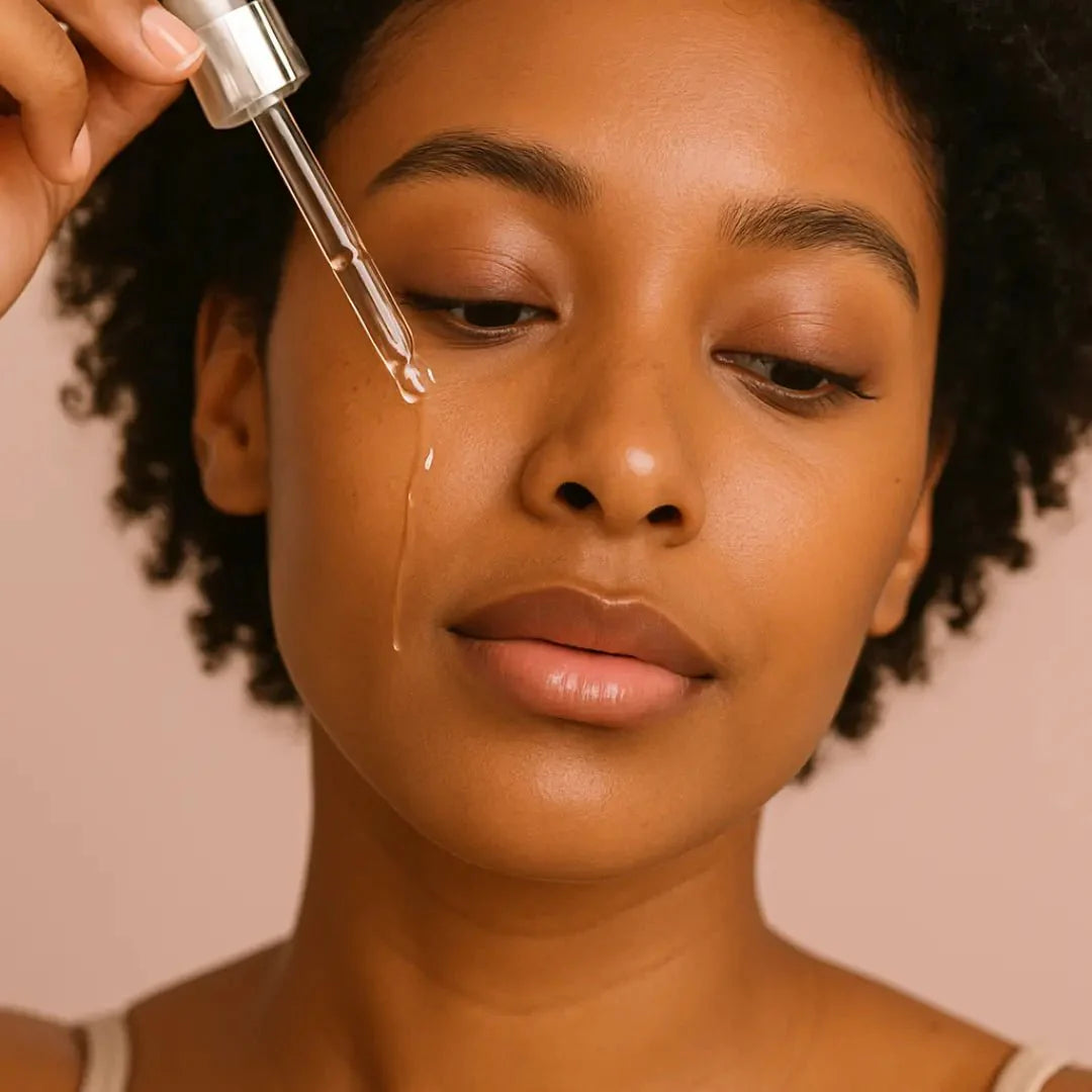 Open the serum bottle and dispense a small amount onto your fingertips. The exact amount will depend on the specific product and its instructions, but typically a few drops or a pea-sized amount is sufficient.